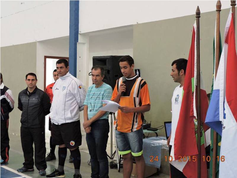 Matias Alves, atleta que foi eleito a revelação do 6º Campeonato Municipal de Futebol de Itapoá, representou todos os demais competidores no juramento oficial do Campeonato.