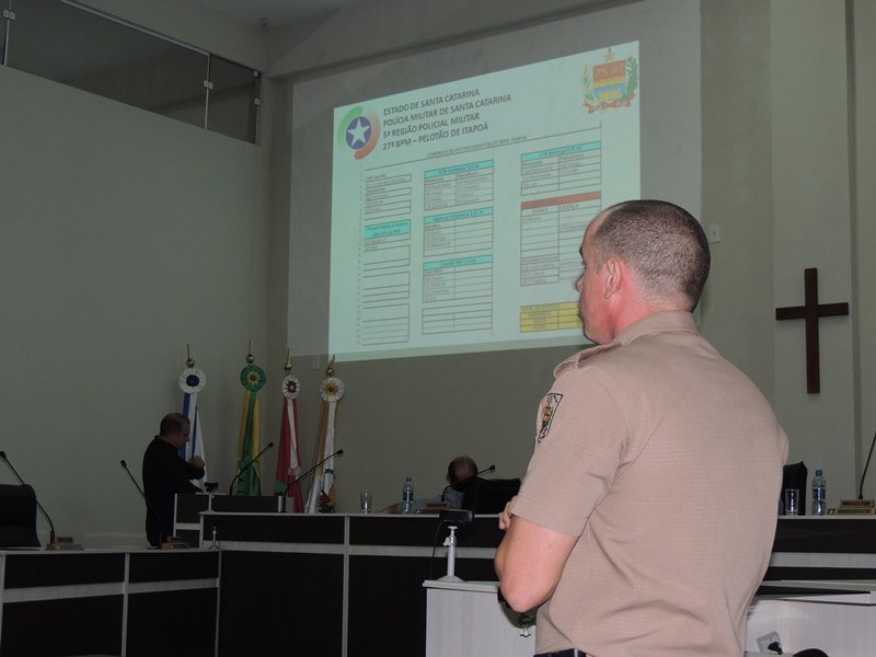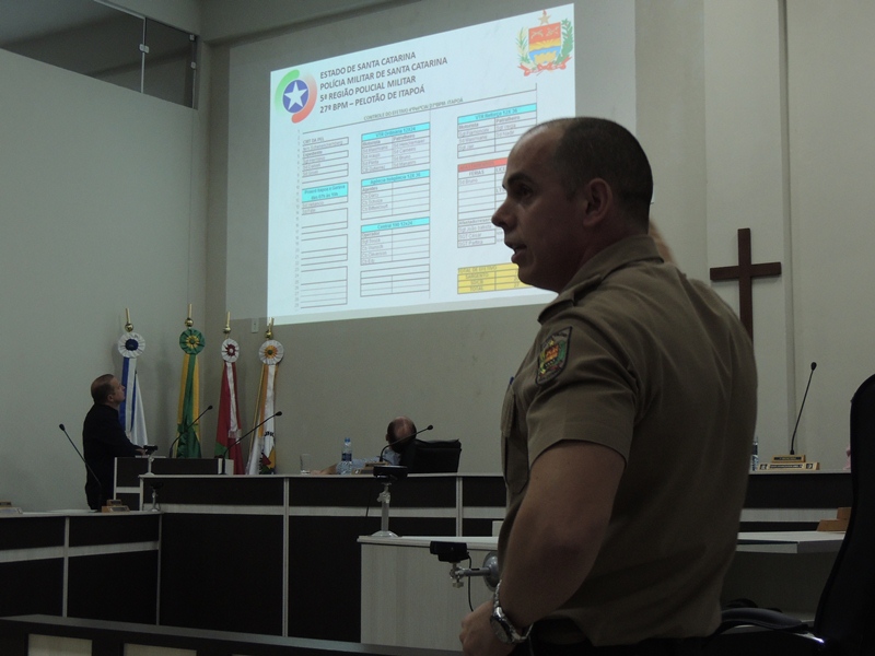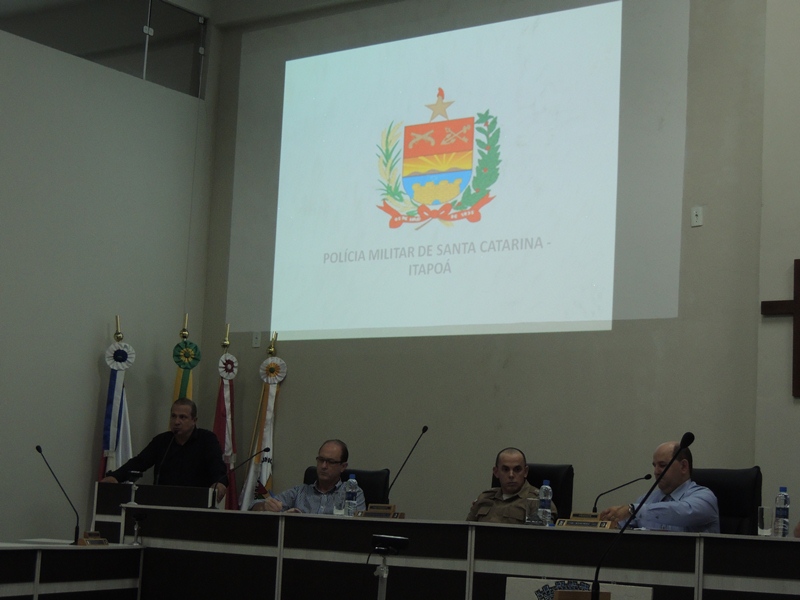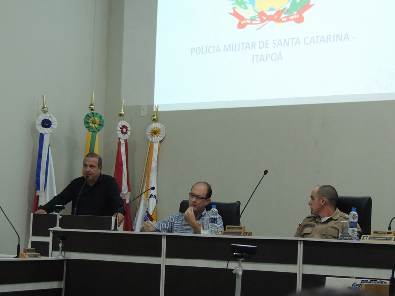 Na noite dessa terça-feira, dia 03 de novembro, a Câmara de Vereadores de Itapoá foi sede da audiência pública do Conseg (Conselho Comunitário de Segurança) do Município. O encontro foi promovido pelo próprio conselho, presidido pelo radialista Marcelo Mardegan. Também compuseram a mesa principal do evento: o comandante da Polícia Militar de Itapoá, tenente Ademir Schenekember; Luís Carlos Zagonel, Chefe de Gabinete da Prefeitura local; vereador Daniel Silvano Weber, presidente da Câmara de Vereadores; e Telma Teixeira Bauer (presidente da Comissão Representativa da Comarca de Itapoá na OAB – Ordem dos Advogados do Brasil). Além deles, prestigiaram a reunião, o 2° tenente BM e comandante do Corpo de Bombeiros Militar de Itapoá, Fábio Jerônimo do Carmo; além de vereadores; secretários municipais; representantes de associações locais; e muitos membros da comunidade em geral, que lotaram as dependências da Casa de Leis. Alunos do Ceja (Centro de Educação de Jovens e Adultos) Unidade Nereu Ramos, através do Projeto Cidadania, coordenado pela professora Gabriela de Paula Nascimento, também participaram.