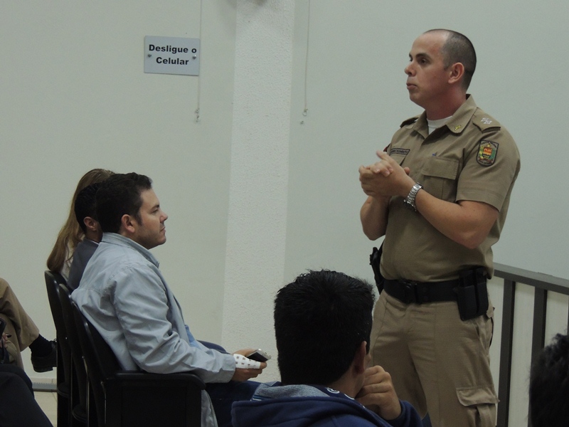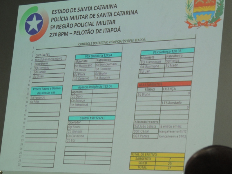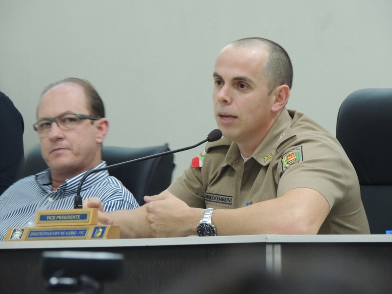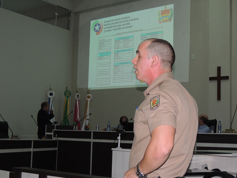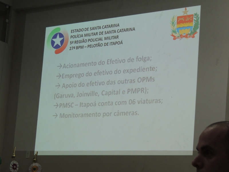 Na sequência, o Tenente PM Schenekember explicou a importância do Conseg, que atua em parceria com as forças policiais. Segundo ele, apesar de todos os esforços, Itapoá tem muitos problemas de segurança pública e o auxílio da comunidade é de extrema importância na busca de soluções e combate à criminalidade.