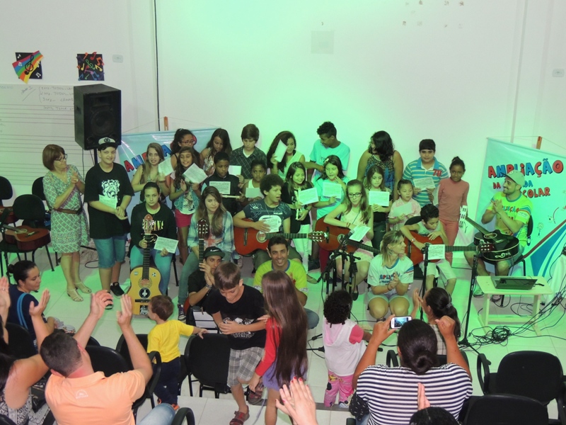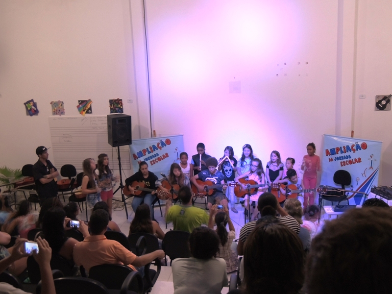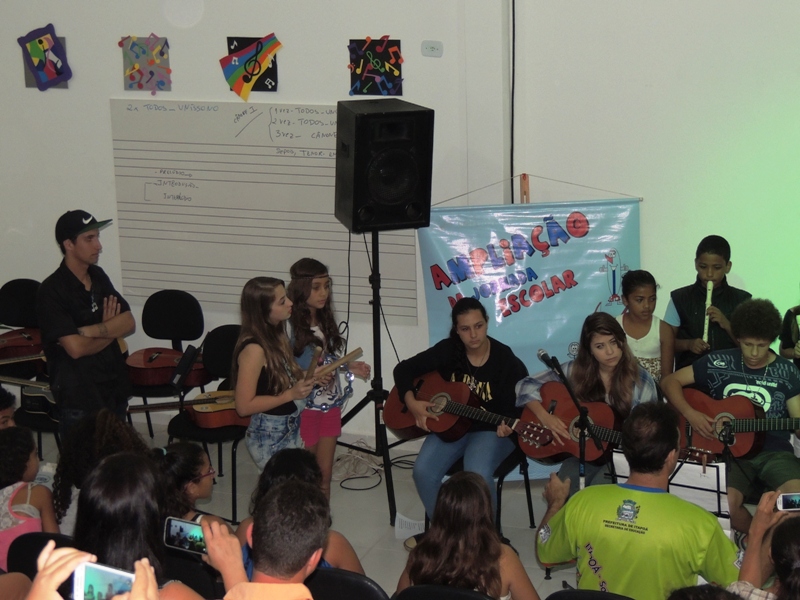A atividade marcou o encerramento da atividade de música do Projeto Ampliação da Jornada Escolar neste ano de 2015.